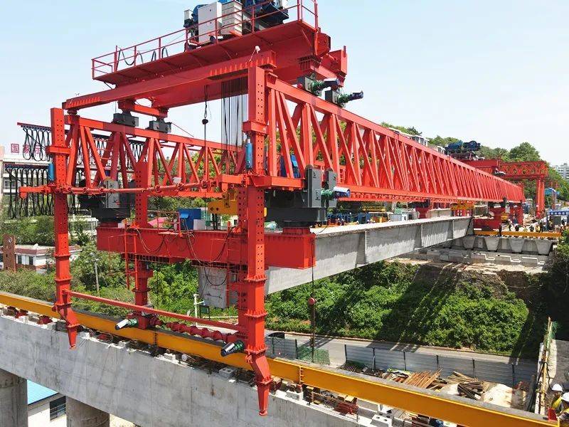 响田大桥是我市中环快速路上的关键节点,位于株洲北站“咽喉区”,上跨京广、沪昆铁路及各专用线等21股道,响田大桥拓宽改造工程对于改善响田大道东西交通和完善城区路网规划具有重要意义。拓宽改造工程位于响田东路,新建响田大桥位于既有响田大桥北侧,道路等级为城市快速路标准,设计行车速度60Km/h。桥梁全长333.5m,上部构造采用先简支后桥面连续预应力混凝土小箱梁,项目预应力小箱梁一共99片,每跨11片,本次架设箱梁为第八跨,采用全新450T架桥机,为在本项目上首次使用。(市城发集团)