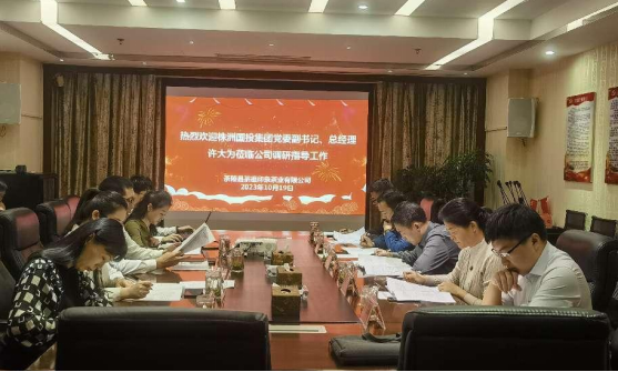 10月19日,市国投集团党委书记、董事长周述勇,党委副书记、总经理许大为一行赴九郎山集团开展调研,并召开专题调研工作会议,集团党委委员、副总经理,九郎山集团党委书记、董事长龚守仁陪同调研。