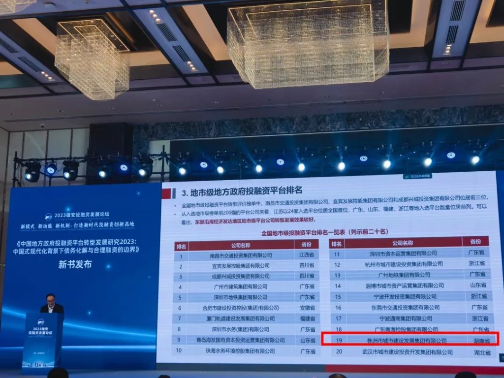 10月21日,2023雄安投融资发展论坛在河北雄安新区召开,集团副总经理张剑,集团党群人才部、财务融资部负责人参加。论坛上,地方政府投融资研究中心正式发布了新书《中国地方政府投融资平台转型发展研究2023——中国式现代化背景下债务化解与合理融资的边界》并公布了全国地方政府投融资平台转型发展评价结果。其中,市城发集团位列地市级地方政府投融资平台第19位。
