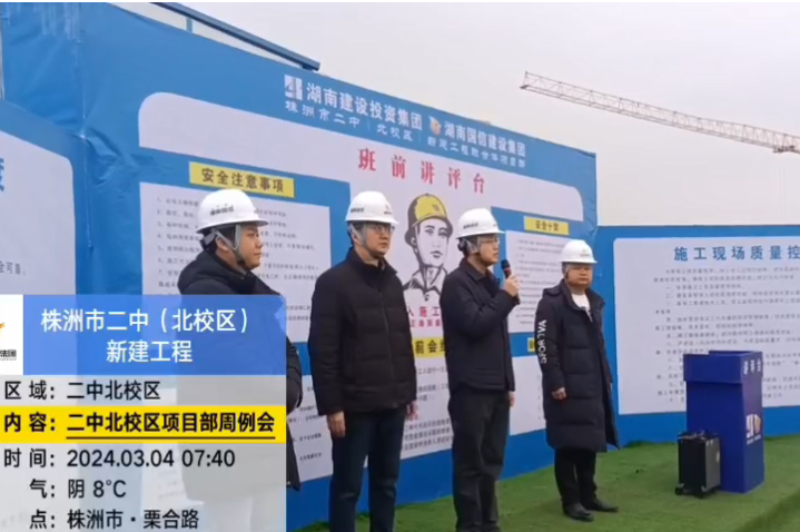 安全生产早班会是日常管理的重要环节,更是确保工程安全、打通安全生产“最后一公里”的关键。二中北校区是株洲市的重点民生工程,需尽快完工确保在2024年9月1日如期开学,建设任务刻不容缓。