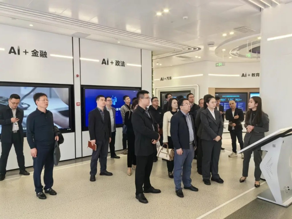 周述勇一行首先参观了科大讯飞人工智能展厅,听取了科大讯飞的发展历程以及AI+系列核心技术应用情况,并体验了讯飞智能办公本、翻译机等一系列C端产品。