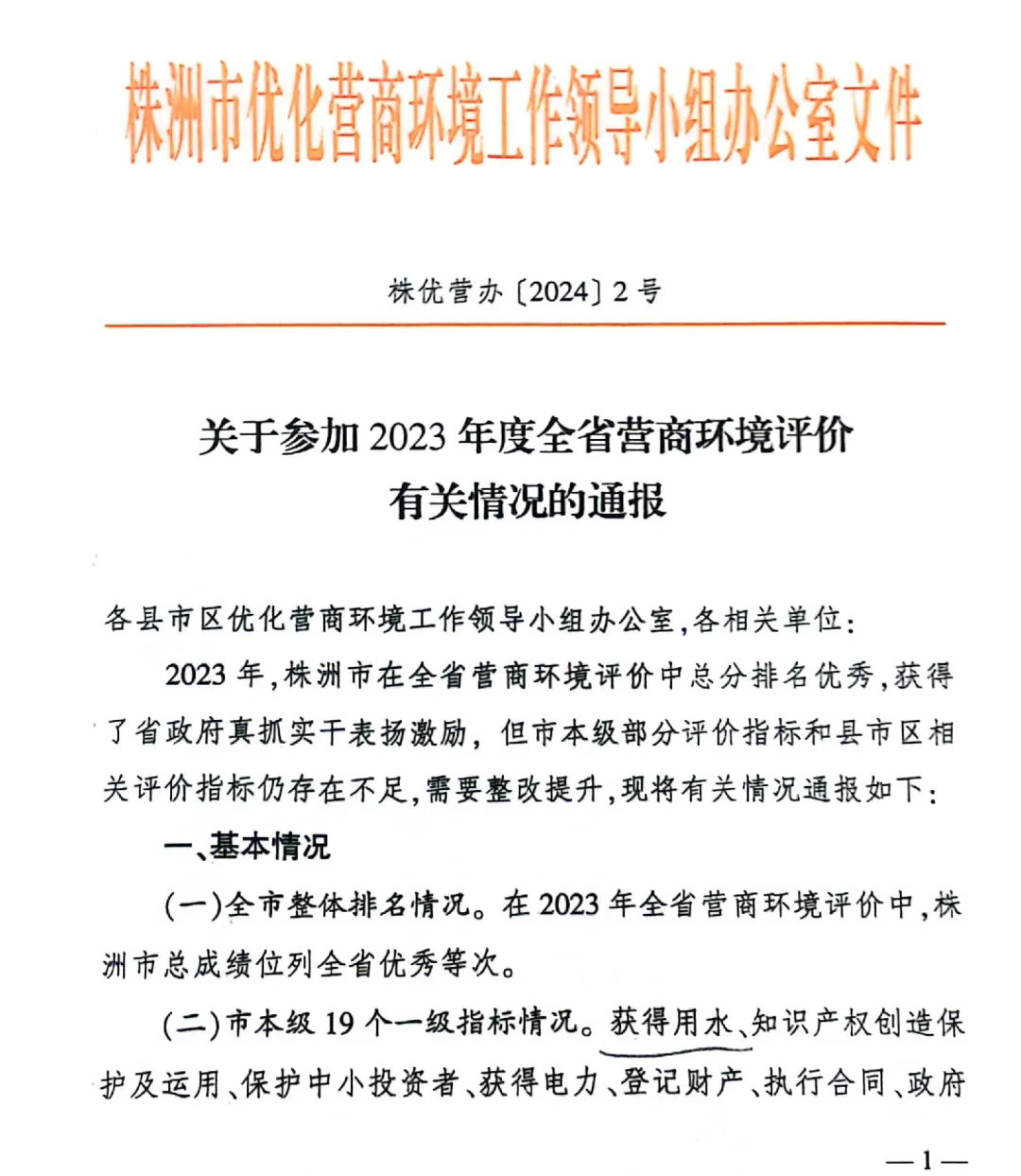 近日,株洲市优化营商环境工作领导小组公布2023年度全省营商环境评价结果,市水务集团在“获得用水”指标排名中获得全省第一,这是市水务集团参与全省营商营商环境评价以来,连续第三年获得优秀成绩。
