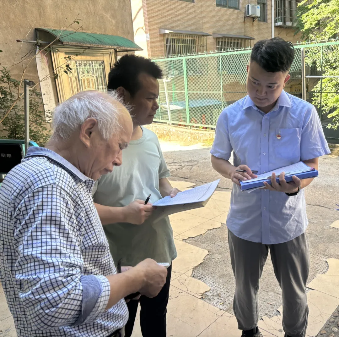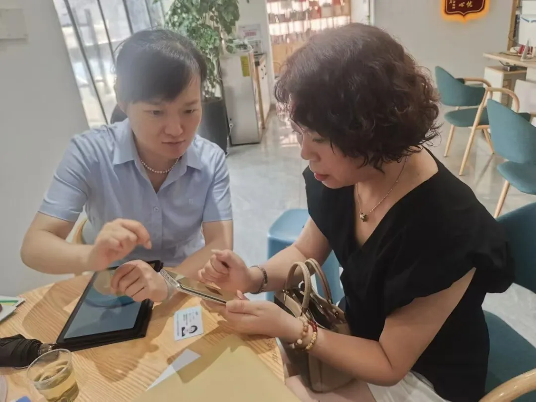 业务主管王资、业务员胡晓政拿着平板电脑,挨家挨户耐心地说明自己的来意。每敲开一扇门,迎接他的不仅是室内的丝丝凉意,更是业主们好奇的目光。每一份合同的签订都承载着业主的信任与期望,也标志着项目向前迈出坚实一步。因此,她们总是以最饱满的热情、最专业的态度,用心地向每一位业主解释合同条款,解答他们的疑问,确保用户权益得到最大程度地保障。