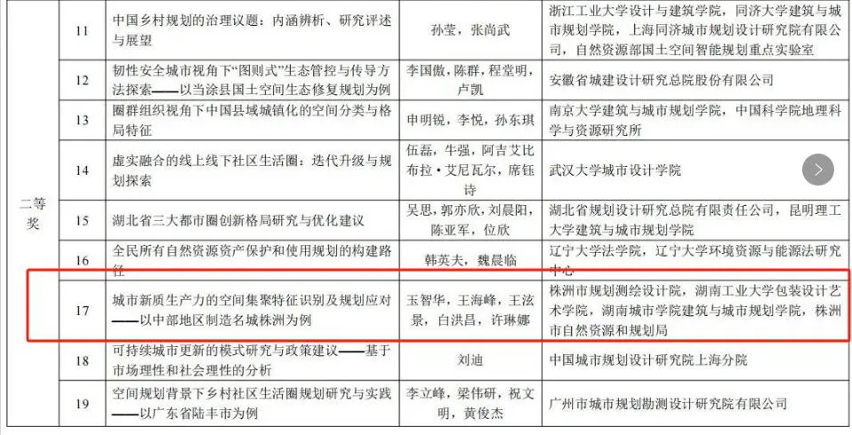近期,2024年全国国土空间规划年会在杭州圆满落幕。会上公布了“新赛道 新动能 新优势”主题征文获得者名单。本次年会征文活动在全国范围内共征集参选论文600余篇,经专家层层评审后遴选出一等奖10篇、二等奖20篇、三等奖30篇。市规划测绘设计院公司报送的《城市新质生产力的空间集聚特征识别及规划应对——以中部地区制造名城株洲为例》一文荣获二等奖,是湖南省地州市设计院唯一获奖论文。这一荣誉不仅是对公司在城市规划领域的深厚底蕴和科研实力的肯定,更是对其在国土空间规划领域不断创新、追求卓越精神的认可。
