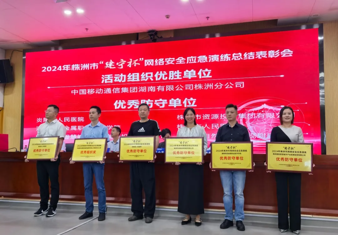 10月18日,株洲市委网信办举办2024年株洲市“建宁杯”网络安全应急演练总结暨表彰大会,市资源集团在此次演练中荣获“优秀防守单位”称号。