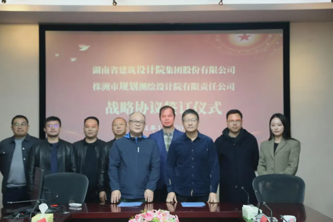 11月20日,湖南省建筑设计院集团股份有限公司(简称“省建筑院公司”)与株洲市规划测绘设计院有限责任公司(简称“市规划院公司”)签订战略合作协议。省建筑院公司副总经理汪东国,市规划院公司党委书记、董事长苏晓青分别代表双方签约。市规划院公司副总经理汤海良、双方职能和生产部门负责人等参加会议。