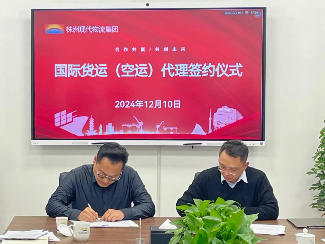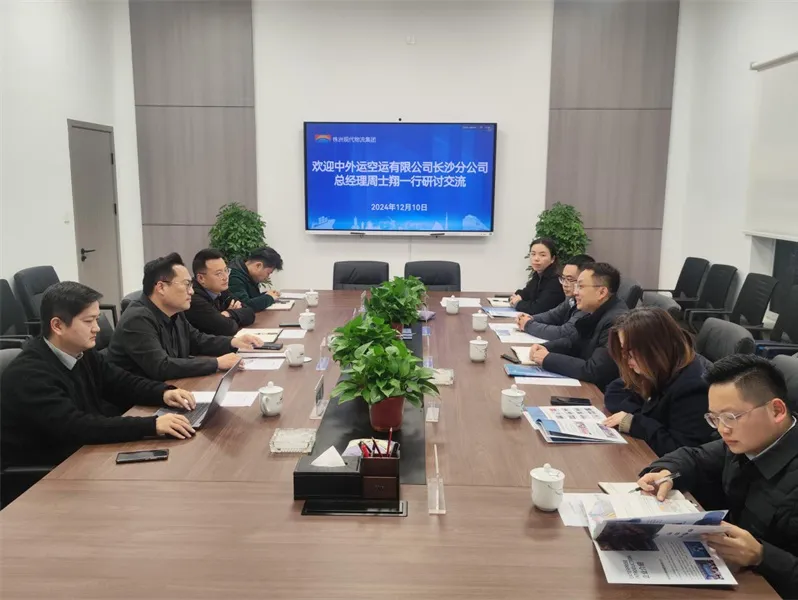 12月10日下午,中外运空运有限公司长沙分公司总经理周士翔率队到株洲现代物流集团开展合作洽谈,市城发集团党委委员、副总经理,现代物流集团董事长兼总经理张剑,物流集团运营投资部、国际贸易事业部相关负责人参加。