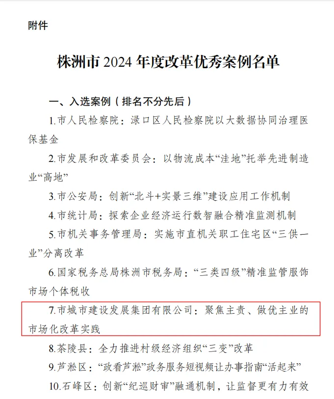 市城发集团改革案例获评“株洲市2024年度改革优秀案例”