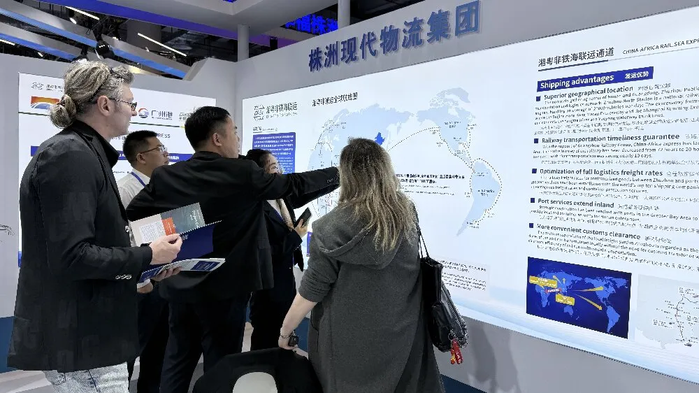 株洲现代物流集团展厅充分展示了湘粤非铁海联运、株洲港、株洲铜塘湾保税物流中心(B型)及相关业务成果,吸引来自非洲、东盟、中东欧等全球各地企业代表到访,并就湘粤非铁海联运通道优势及跨境合作模式等内容展开深度交流,多家国际企业与贸易商表达合作意向。