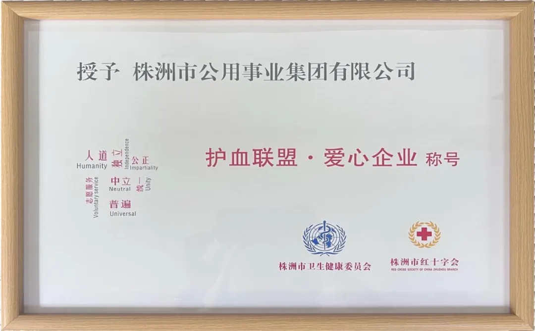 近日,在株洲市卫健委、株洲市红十字会2024年联合“株洲智慧停车”共同推出向全市无偿献血者、志愿服务者及造血干细胞捐献者提供专属停车优惠活动中,为表彰市城发集团下属株洲市公用事业集团有限公司(以下简称“公用事业集团”)在支持无偿献血公益事业、创新关怀服务方面所做出的突出贡献,株洲市卫健委、市红十字会授予株洲市公用事业集团有限公司“护血联盟·爱心企业”荣誉称号。