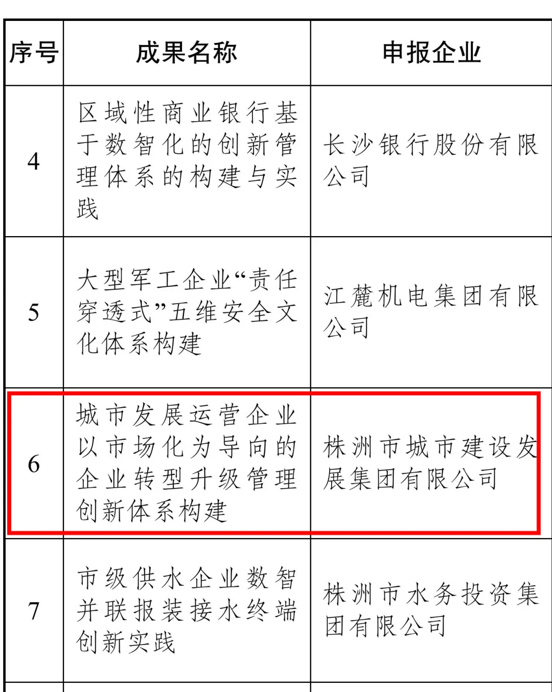 市城发集团案例获评第二十六届湖南省企业管理现代化创新成果二等成果