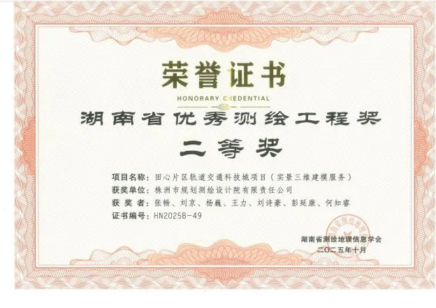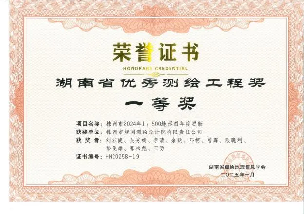 市规划测绘设计院公司在2025年湖南省优秀测绘工程奖评选活动中喜获佳绩