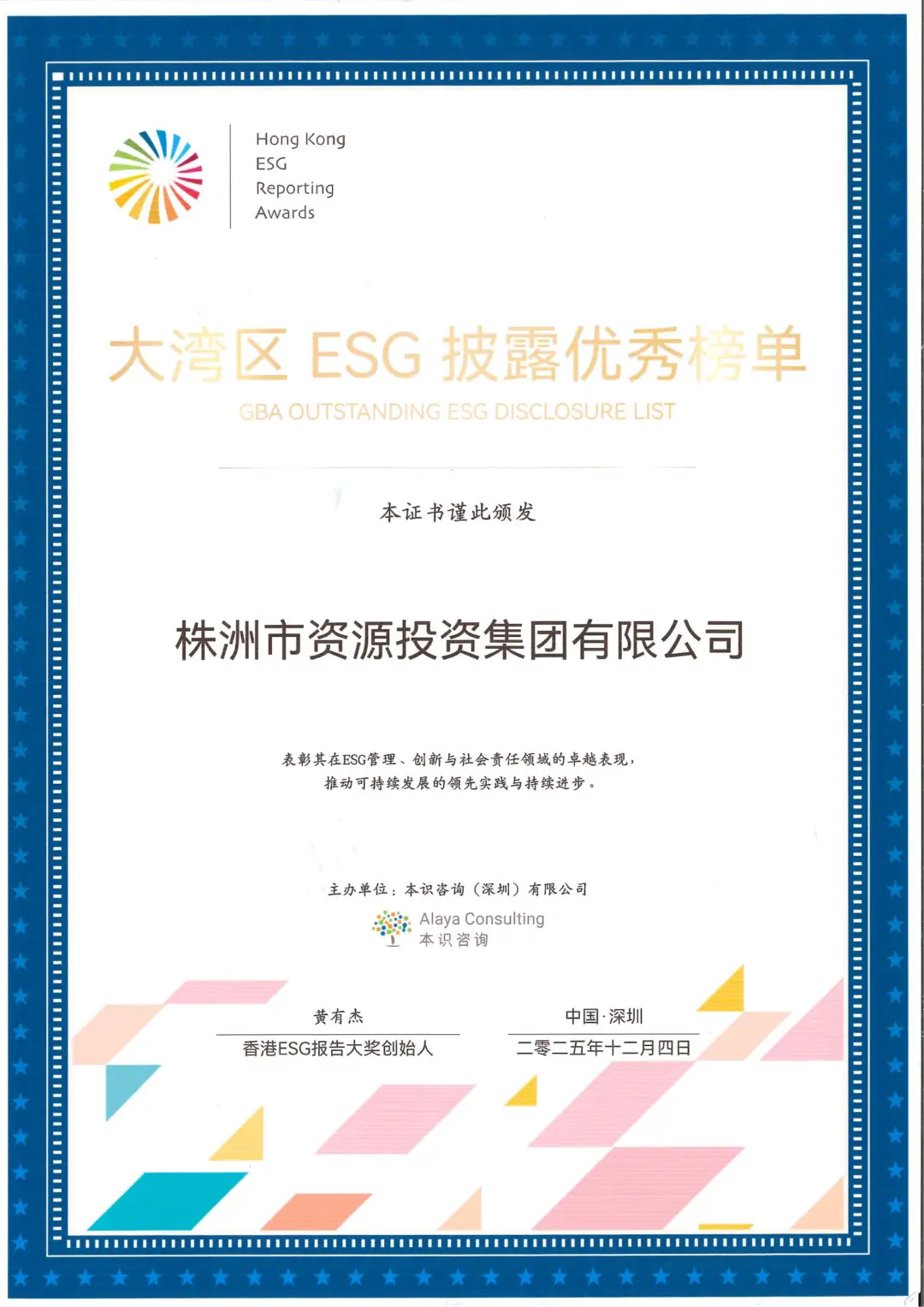 12月4日,大湾区绿色金融与可持续发展高峰论坛圆满落幕,市资源集团凭借在环境、社会及公司治理(ESG)领域的卓越实践与透明披露,荣获优秀披露榜单。