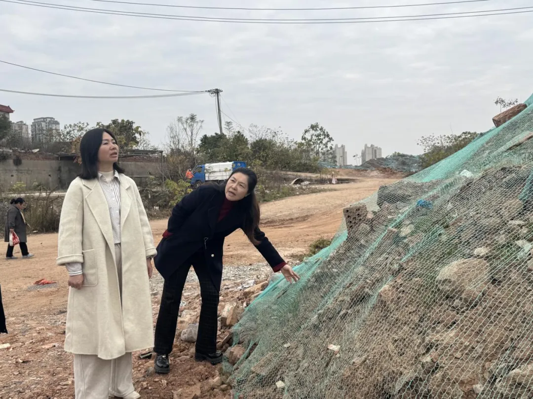 经前期现场踏勘,金垚公司太阳村项目中4个地块(约840亩)存在大面积黄土裸露、建筑垃圾堆放问题,需立即复绿整改。李喜英先察看了待整改地块,详细了解裸露范围、垃圾体量及整改难点,再赴已整改地块,检查植被存活、防尘网铺设情况,对阶段性成效表示肯定。她强调,要进一步压实责任,明确太阳村地块整改责任人与整改时限。要科学制定方案,建立日常巡查机制,防止问题反弹。要加强与属地部门联动,形成整治合力。(市资源集团)