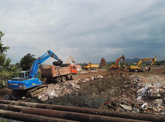 项目现场,地表土的平均挖掘深度在60厘米左右,水塘淤泥更是挖到了1.5米深,但这只是基本要求深度。 “以实际检测数据为准,不管多深,一直挖到重金属检测达标为止。”上述负责人介绍,挖掘出来的含重金属土壤、淤泥,将送到稳定固化中心无害化处理,之后暂存在霞湾砖厂,待“清水塘重金属污染环境治理工程”中的固体废弃物填埋场建成后,再统一安全填埋。