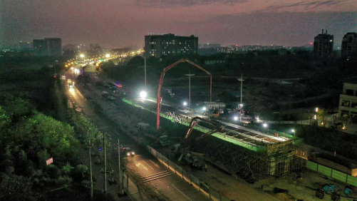 玉龙路上跨桥两厢式箱梁的成功浇筑,标志着云龙大道(洞株路株洲延伸段)快速化改造项目桥梁上部结构施工取得重大突破,极大鼓舞了项目参建各方斗志,也为后续施工积累了宝贵经验,为如质如期完成限定任务打下了坚实基础。截至10月底跨线桥桩基础已全部施工完成,目前进行桥梁结构施工,地道围护结构钻孔灌注桩、抗拔桩已全部完成,目前进行地道开挖及冠梁施工,项目累计完成建安投资12836万元,完成建安总投资的30.4%。