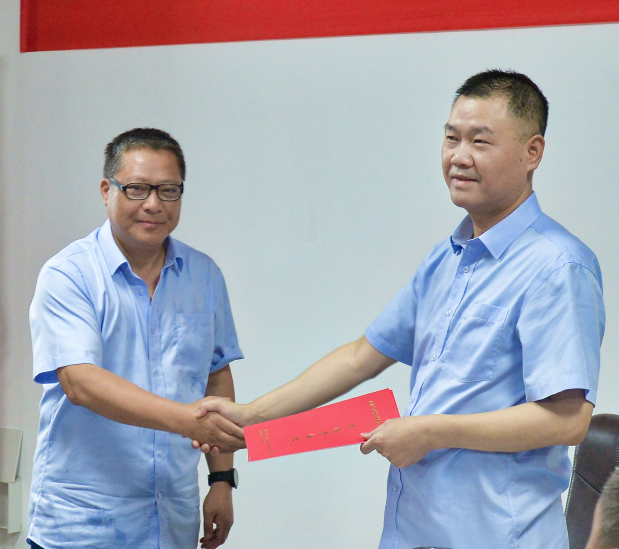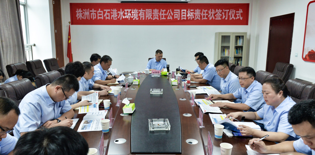 在随后召开的调度会上,易振华代表白石港水环境有限责任公司郑重地向集团党委书记、董事长谢锦辉递交了目标责任状。