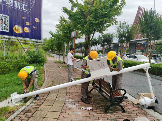 8月4日上午,在“雪亮工程”项目现场,施工人员正在安装摄像头。这组摄像头由两个高清摄像头组成,具有拍摄距离远、角度大的优点,能清楚地拍摄来往行人的面部特征,有效提高治安防控科技水平,为社会治理提供技术支持。