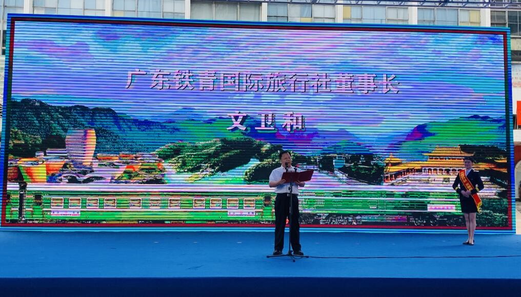 文卫和在讲话中代表广东铁青国际旅行社,向一直以来关心支持铁路建设和铁青发展的各位领导、同仁和媒体朋友表示了衷心的感谢。他表示,广东铁青将继续加强路地协作,做好旅游专列开行的配合服务,进一步优化开行时间、编组和运行图铺划,不断提升旅客出行的美好体验,拓展区域旅游联动市场,为沿线区域经济发展助力。