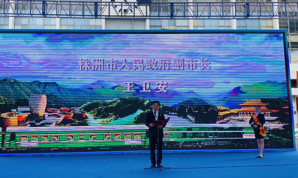 仪式最后,现场鸣高音汽笛,锣鼓响起,王洪斌副书记宣布株洲市旅游专列正式开通!