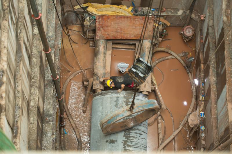 会前,谢锦辉一行在项目施工现场,实地调研工程建设进度情况。