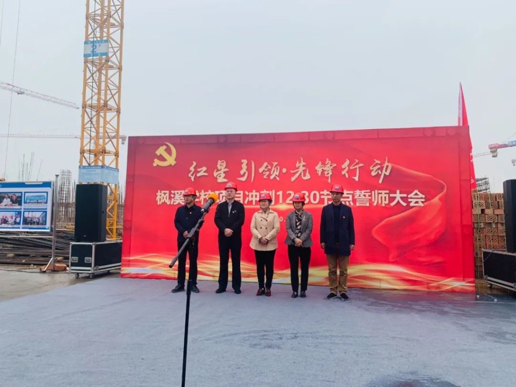为确保“12.30”节点圆满完成,枫溪学校项目总经理周向荣带领全体党员突击队队员庄严宣誓,坚决听从党的号召、遵守组织纪律,服从组织安排,严格按照行动部署,吃苦在前、冲锋在先,顽强拼搏、攻坚克难,坚决夺取12.30节点目标,优质高效完成项目建设任务,确保2021年秋季如期开学。