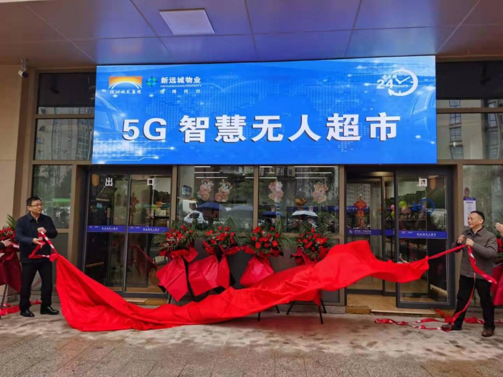 2月8日上午,市城发集团下属新远城物业5G智慧无人超市开业!城发集团副总经理肖和政、中国移动株洲分公司总经理胡震宇共同为其揭牌。深圳礼舍科技有限公司湖南分公司负责人彭奎,城发集团各部门、各子公司相关负责人,新远城物业本部及三个中心物业项目部全体员工参加仪式。
