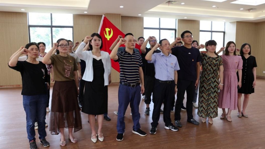 6月24日下午,市城发集团下属置地集团党支部在株洲市戴碧蓉爱心大院项目现场,开展“党旗在基层一线高高飘扬”主题党日活动。城发集团副总经理肖和政、置地集团全体党员参加活动。