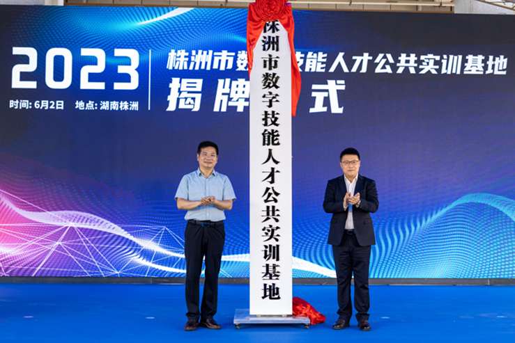 市委常委、市政府常务副市长王卫安,华为湖南政企总经理吴振华共同为实训基地揭牌。