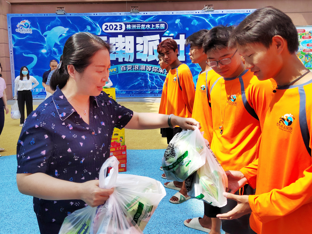 持续高温闷热的天气,给坚守在建设工地一线的工人们带来了严峻“烤”验,也牵动着集团领导的心。近日,市国投集团领导杨宇、龚守仁、曾艳分别带队前往水竹湖学校、云龙水上乐园、云龙污水处理厂等项目开展夏季“送清凉”活动,给奋战在工地一线的劳动者送上一份清凉,一份关怀。 (市国投集团)