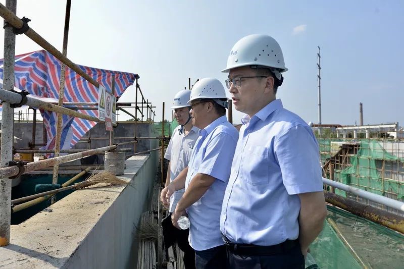 在清水塘工业废水处理利用厂改扩建项目现场,调研组一行听取了工程项目设计方案、具体进展等情况汇报,并实地察看了项目主体建设现场。