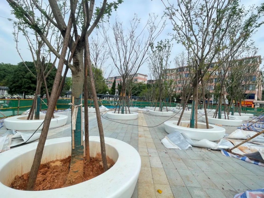 目前项目已完成北门广场施工、高线公园游道透水砼施工,正在进行景观平台钢结构安装和绿化栽植。天源农贸市场、新民综合楼外立面改造正在扫尾,完成了藏龙公园游道透水砼、廊架安装,正在进行廊架装修、绿化栽植、景观灯安装。9月底,多处城市功能节点将向市民开放,12月底项目将全面完工。(市城发集团)