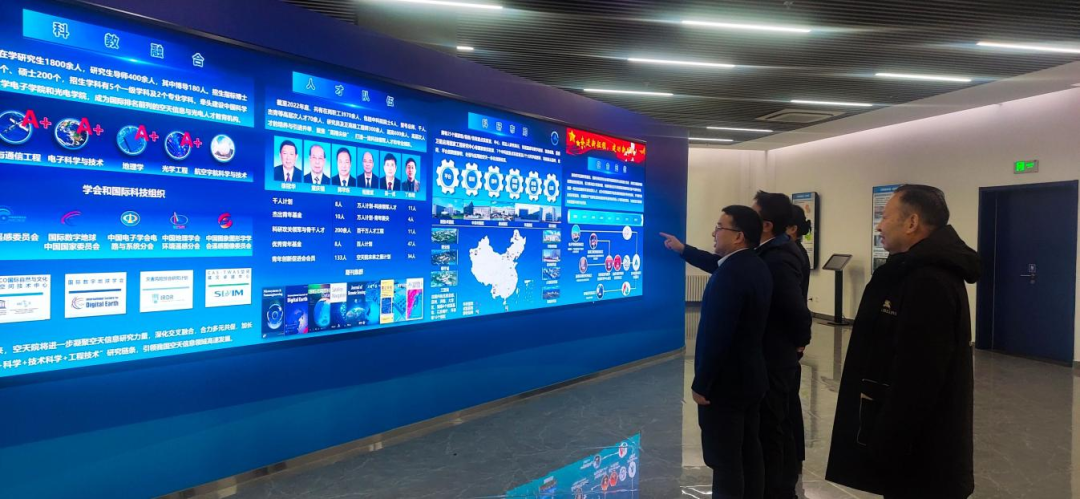 在空天院,周述勇参观了展厅,并与遥感应用工程中心书记王大成、时空知识图谱研究室主任杨丽娜等进行座谈。王大成介绍了空天院的基本情况及遥感中心的运营情况,他表示,株洲国投集团产业投资成果丰硕,期待双方建立长效合作机制,运用科研成果,为更多企业提供北斗应用场景成果转化,助力株洲北斗产业蓬勃发展。周述勇高度认可空天院在北斗产业创新研究方面取得的成就,他表示,株洲国投集团与空天院有着良好的合作基础,希望双方加强沟通交流,进一步深化合作,依托空天院雄厚的科技资源优势,在株洲孵化更多北斗产业科技创新和成果应用项目,助力株洲的北斗规模应用产业持续做大做强。