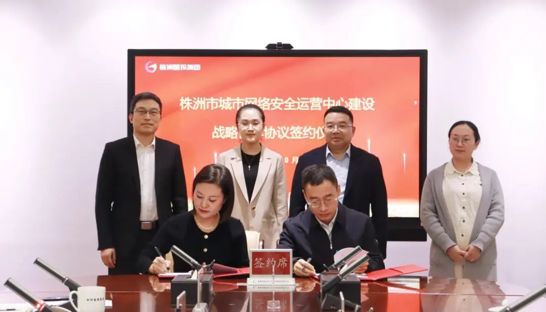 10月23日下午,市国投集团子公司株洲国投智慧城市产业发展投资有限公司(简称“国投智城公司”)与中共株洲市委网络安全和信息化委员会办公室(简称“市委网信办”)签订“株洲市城市网络安全运营中心建设”战略合作协议。市委网信办主任钟洁,国投集团党委书记、董事长周述勇见证签约。市委网信办副主任周武旺与国投智城公司负责人易晖分别代表双方签约。国投集团党委副书记、总经理许大为主持。