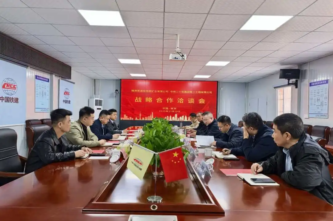 11月19日,市资源集团副总经理彭曦率地矿公司、资源投西建矿业公司相关负责人,赴中铁二十局集团第二工程有限公司G4京港澳高速公路扩容项目CZTJ-8标项目部,与中铁二十局二公司副总经理李建国、市场经营部部长李朝臣、G4京港澳高速公路扩容项目CZTJ-8标项目经理王健等举行会谈,共同见证双方签署砂石骨料项目战略合作协议。