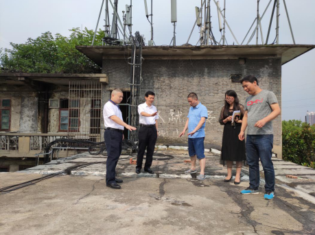 清水塘投资集团党委书记、董事长黄元政一行察看屋顶防水改造现场。
