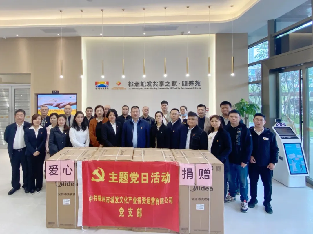 4月22日,为深入开展党史学习教育“我为群众办实事”,市城发文化产业投资运营有限公司党支部联合金龙大酒店党支部开展“关怀长者 奉献社会”活动,向城发共享之家·颐养苑捐赠洗衣机。