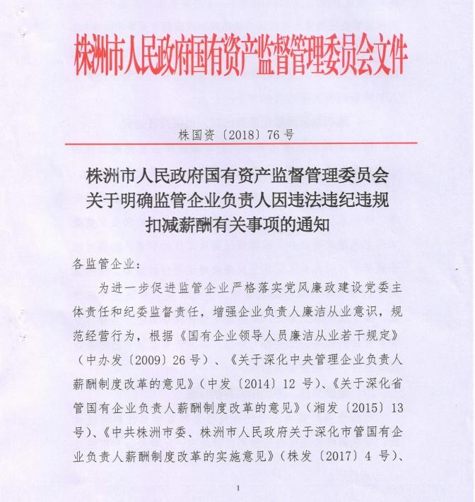关于明确监管企业负责人违规违纪违法扣薪有关事项的通知