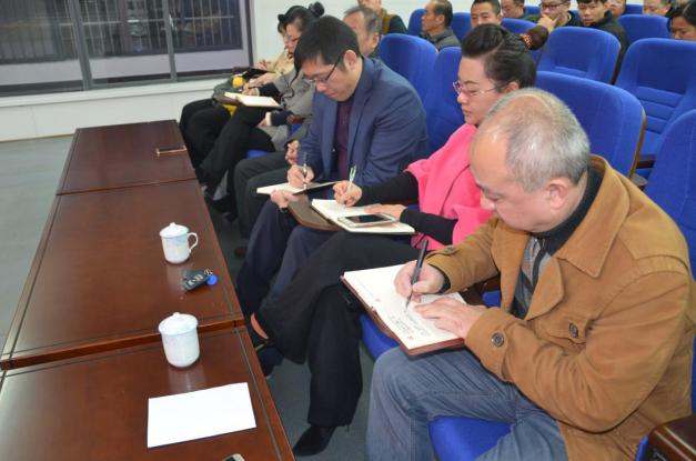 12月12日上午,市教投集团举行党的十九大精神集中学习宣讲会。宣讲会由十九大代表袁健松同志主讲,集团党委书记张建兵同志主持,集团全体干部职工及集团对口党建帮扶单位市塑料五厂全体党员参加学习。