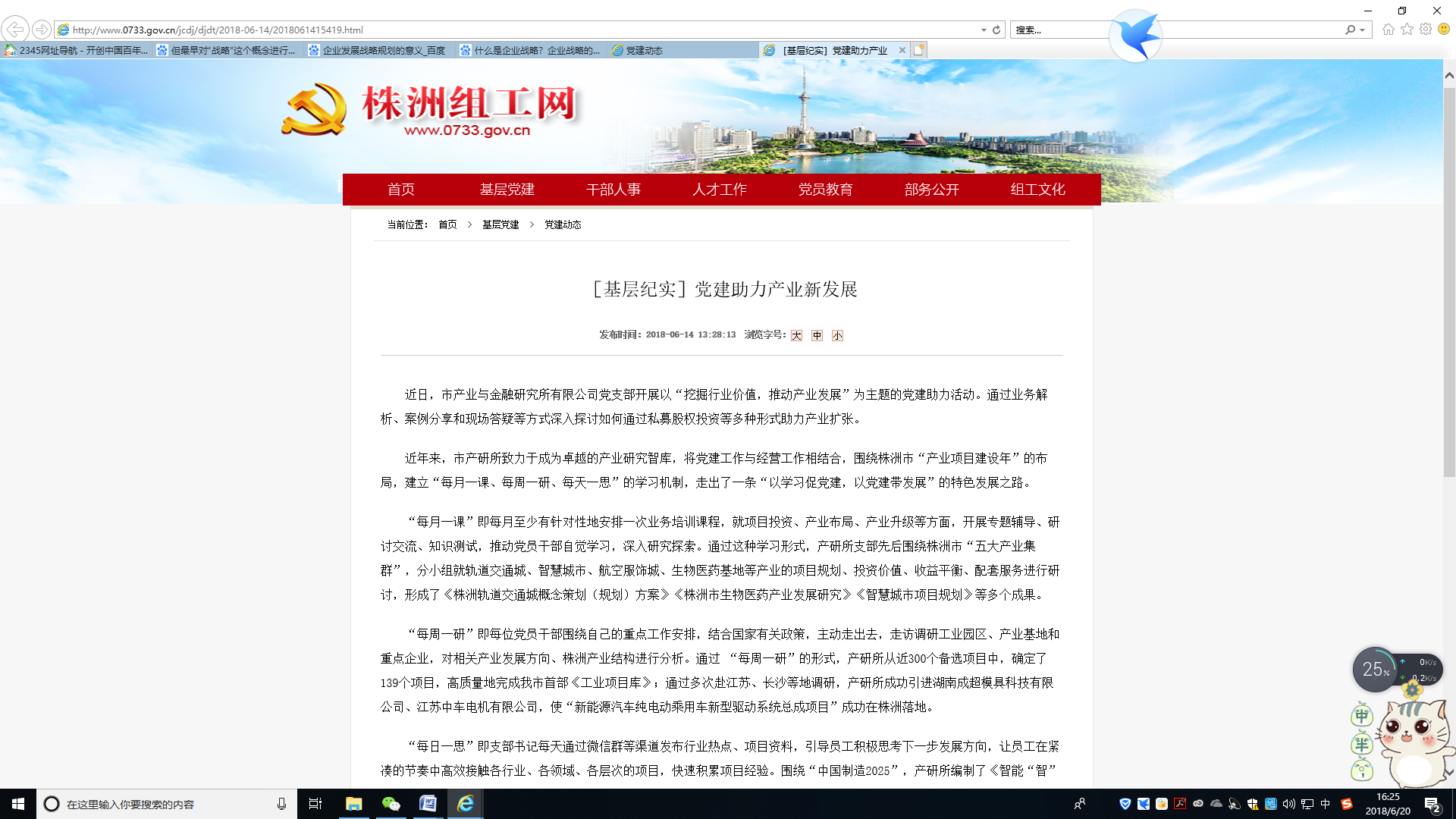近年来,市产研所致力于成为卓越的产业研究智库,将党建工作与经营工作相结合,围绕株洲市“产业项目建设年”的布局,建立“每月一课、每周一研、每日一思”的学习机制,走出了一条“以学习促党建,以党建带发展”的特色发展之路。