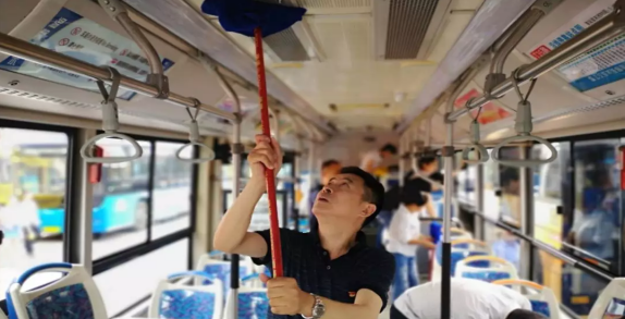 为进一步发挥党员的先锋模范作用,6月5日上午,公交机关全体党员联合物业支部在公司党委书记、董事长肖长江及部分班子成员的带领下,来到神农城北停车场开展“同心协力,共建美丽车厢”主题党日活动,对驶入站场的多台公交车进行彻底的清洁清扫。