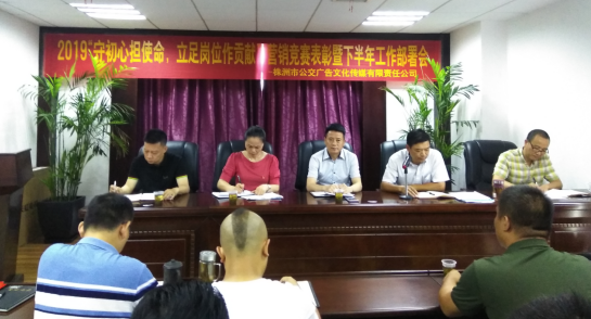 7月16日上午,公司召开“守初心担使命,立足岗位作贡献”营销竞赛表彰暨下半年工作部署会。会上各部门针对2019上半年工作进行了深入分析和总结汇报,并提出了下半年工作思路和具体举措。公司经理旷桂生同志传达了总公司2019年中期经济工作会议精神,并对广告公司上半年目标经营情况和下半年工作进行了总结与部署。