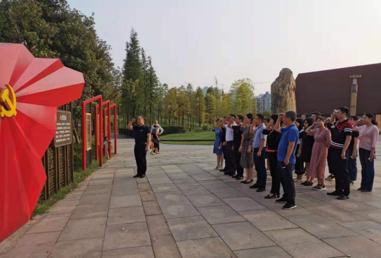 9月17日下午,市地产集团在红色神农湖举行不忘初心、牢记使命” 主题教育读书班开班仪式,重温入党誓词。市委主题教育指导组第二十一组组长王洪安及指导组成员夏滨、谭敏,地产集团领导班子、支部书记及委员和党群工作部全体人员参加开班仪式。