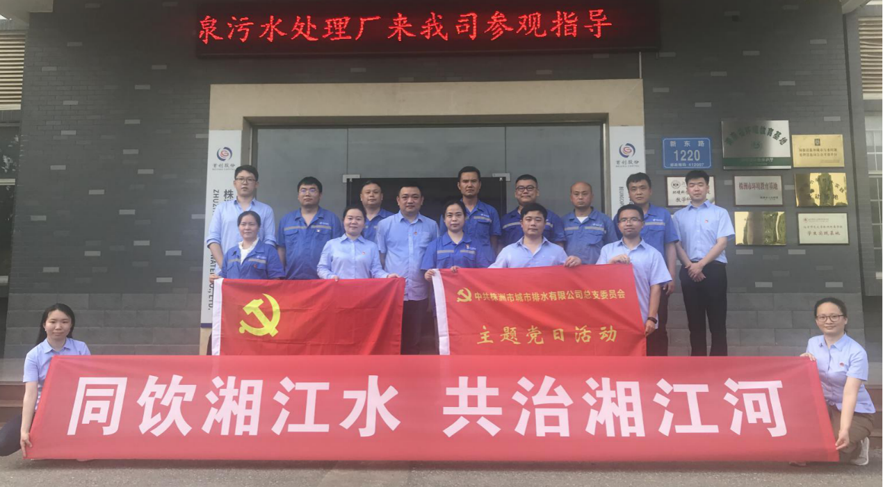 5月7日,市水务集团排水公司龙泉污水处理厂党支部联合株洲首创河西污水处理厂党支部围绕“同饮湘江水,共治湘江河”的主题开展交流学习活动。龙泉污水处理厂党支部书记王劲带领支部全体党员、入党积极分子、技术骨干来到首创河西污水处理厂,就两厂工艺概况、党建工作等进行了深入探讨。