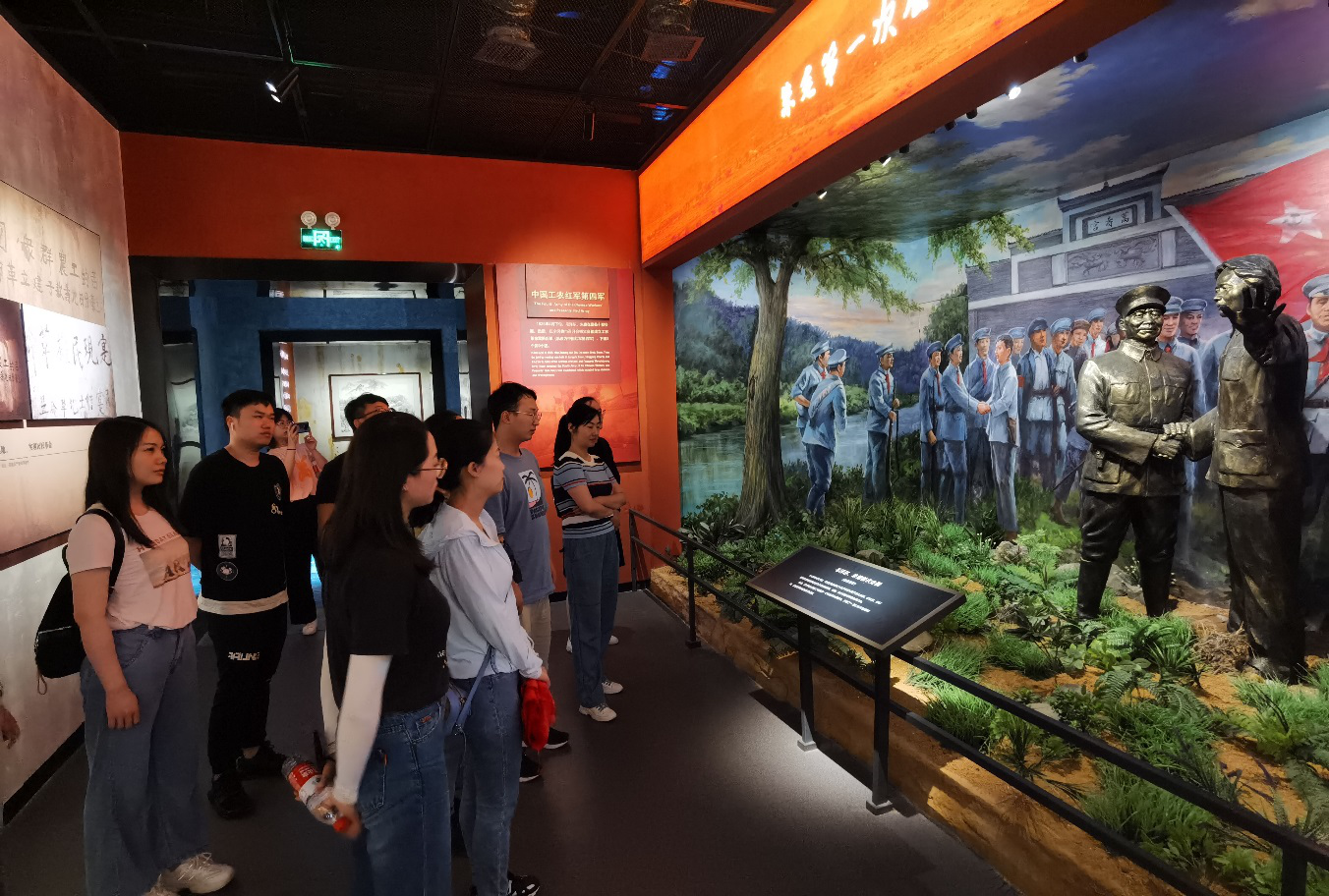 到达炎陵后,大家背起行囊,高举支部旗帜,沿着毛泽东、朱德等老一辈无产阶级革命家的足迹,走着“挑粮小道”,参观了红军亭、红军军营、红军医院、苏维埃政府、红军被服厂等红色革命遗址。队伍在林间小道穿梭,一路上大家听着红色故事,不禁唱起了红歌,对共产党人的初心和使命有了更深的体会和认识。