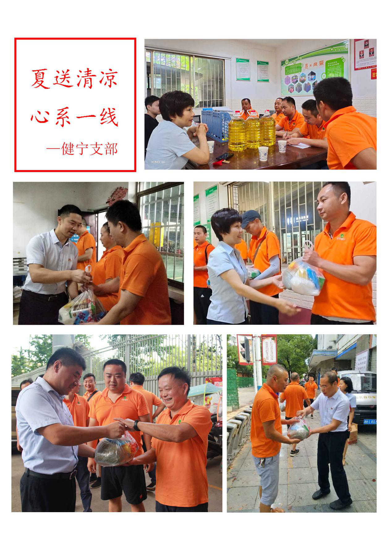 当前,公交健宁公司进入抢抓生产创先争优的经济建设“加速模式”。为保障高温一线作业职工的身心健康和劳动安全,8月7日上午,公交健宁支部全体党员、入党积极分子开展“践行初心使命、心系一线送清凉”为主题党日活动,给奋斗在一线岗位的职工送去了防暑降温的物资和亲切的问候。