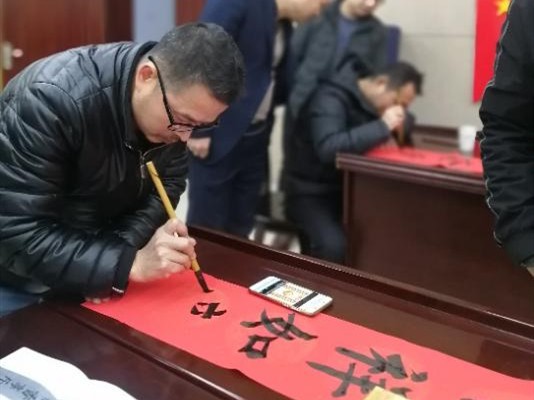 市天桥起重生产一支部书记彭芸同志带领大家一起学习《关于春节期间落实纪检相关要求的通知》。舜利支部书记谭旺军组织王建华、黄灿、吴明进三位书法爱好者分别用楷书、行书、隶书等多种书法体,即席挥毫。一个个苍劲有力的大字跃然纸上,笔尖上流淌出浓浓的年味,行云流水般的书法令在场观众叹为观止。