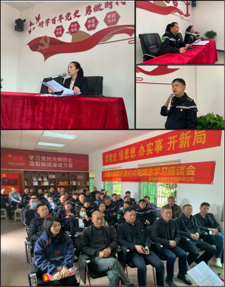活动中,全体党员共同学习周春梅、彭庆文、向纹、徐康同志在政法干线上勤勉敬业、严谨细致,不徇私情、公正司法的事迹。支部书记周三权结合公司实际,向全体党员传达总公司党委书记、董事长肖长江“从党史中汲取磅礴力量、推动公司高质量发展”的党课精神,并集体观看了中国共产党《百年述职报告》,诵读学习《论中国共产党历史》的部分章节。