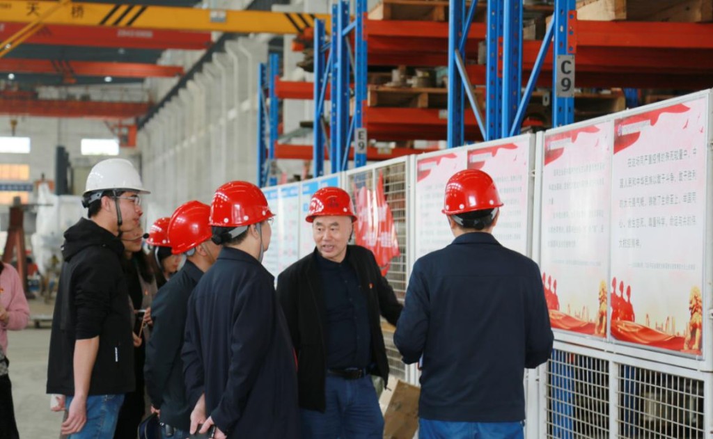 4月22日,市委党史学习教育巡回指导组第八组副组长刘超雄一行到市天桥起重调研指导。