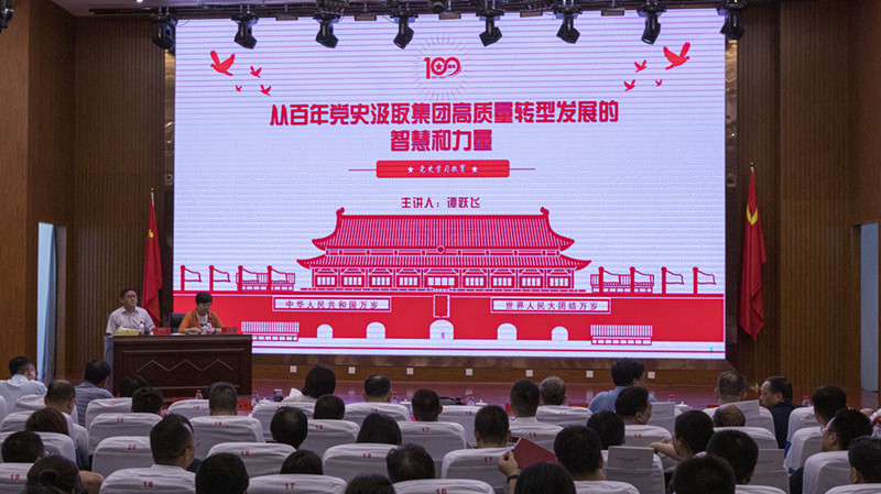 随后,谭跃飞以《从百年党史中汲取集团高质量转型发展的智慧和力量》为题,围绕习近平总书记在党史学习教育动员大会上的重要讲话和习近平总书记关于学习党史的重要论述,从“深入认识为什么要学党史、学什么、怎么学”“回顾百年党史,感悟革命智慧”“汲取奋进力量,引领发展新局”三个方面,结合学习工作中的体会和思考,旁征博引讲述了一堂精彩纷呈、内容详实的党课。党员干部们聚精会神,认真听讲做笔记,现场学习氛围十分浓厚。